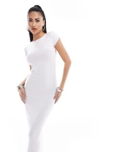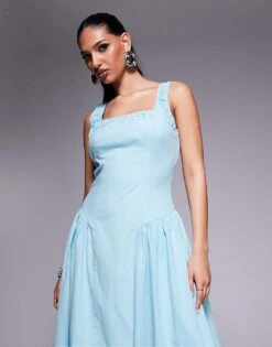 Kaiia Square Neck Ruched Lace Trim Gathered Hip Detail Mini Dress In Yellow Gingham For Women
