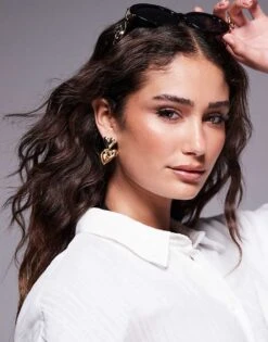 Kaiia Rectangle Hoop Earrings With Heart Charm In Gold For Women Gold/red