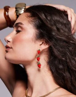 Kaiia Strawberry Charm Drop Earrings In Red And Gold For Women
