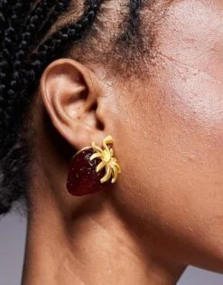 Kaiia Strawberry Stud Earrings In Red And Gold For Women Red/gold