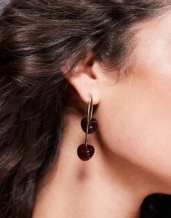 Kaiia Double Dark Cherry Dangle Earrings In Red And Gold For Women Red/gold