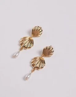 Kaiia Stainless Steel Diamante Shell Stud Earrings In Gold For Women