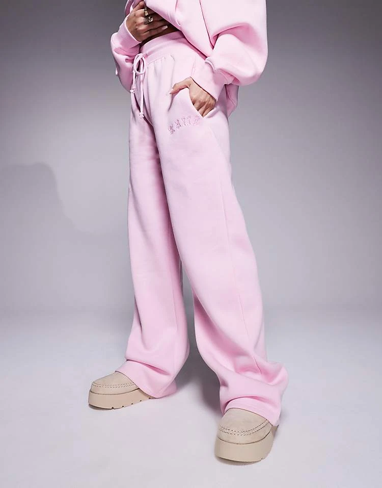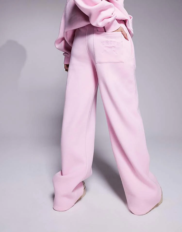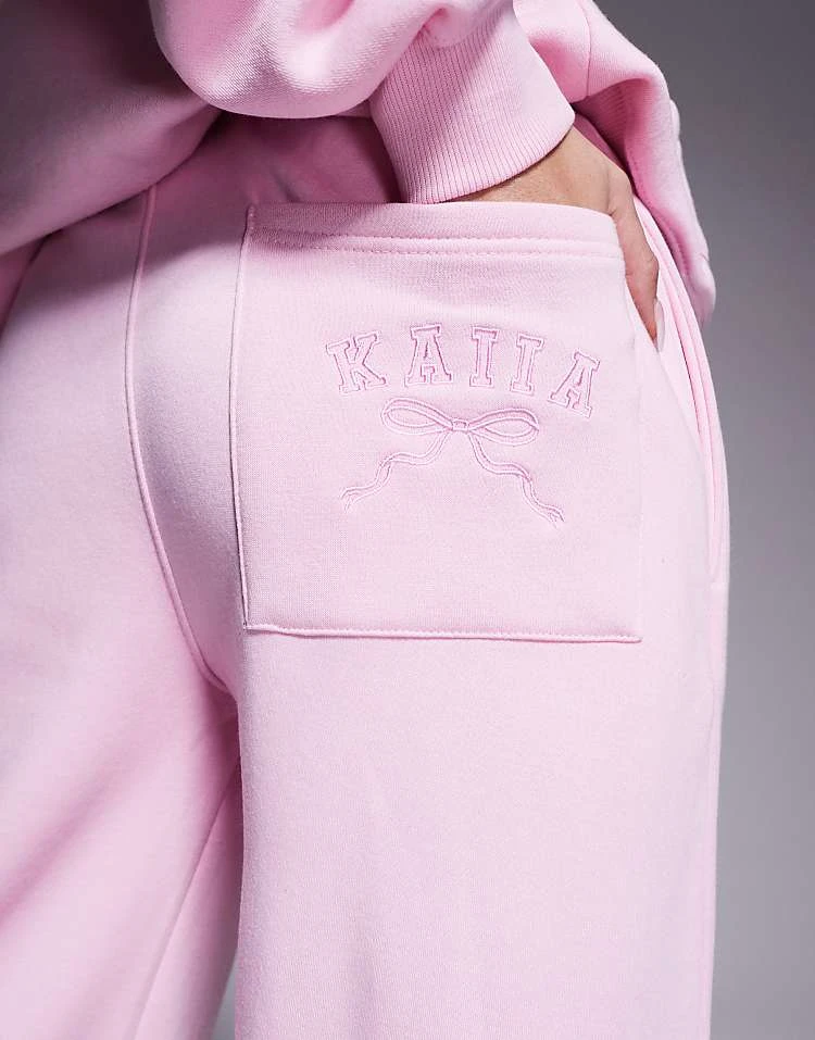 Kaiia Embroidered Logo T-shirt, Zip Through Hoodie, Hoodie And Wide Leg Joggers Co-ord In Light Blue