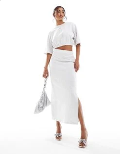 Kaiia Cropped Oversized T-shirt And Maxi Skirt Co-ord In Grey