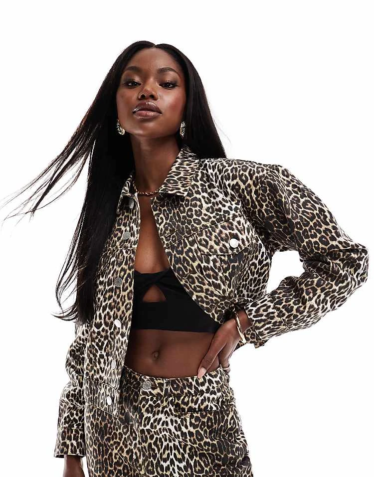 Kaiia Denim Waistcoat, Wide Leg Jeans, Maxi Skirt And Jacket Co-ord In Leopard