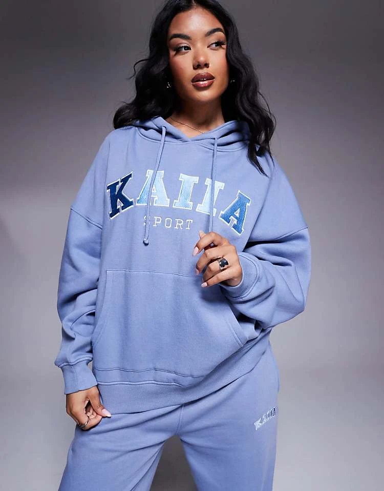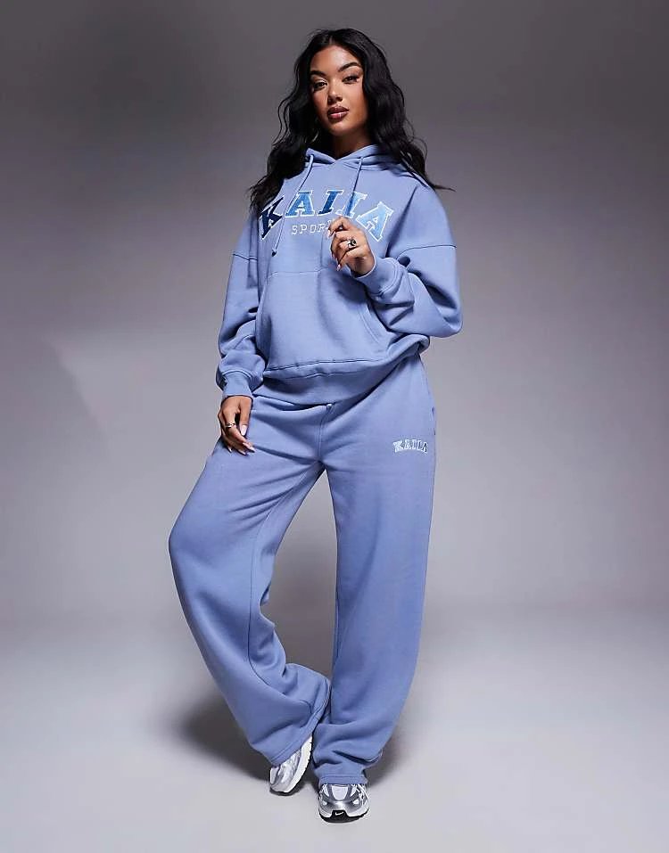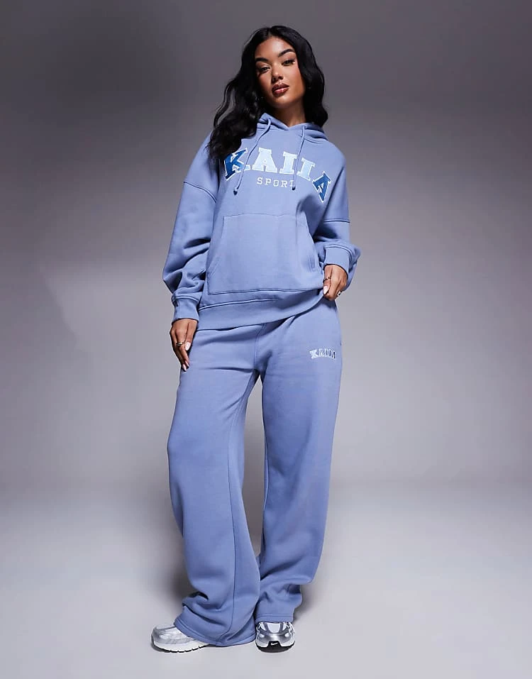 Kaiia Embroidered Logo T-shirt, Zip Through Hoodie, Hoodie And Wide Leg Joggers Co-ord In Light Blue