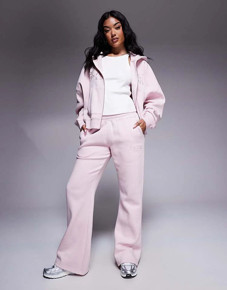 Kaiia Embroidered Logo T-shirt, Zip Through Hoodie, Hoodie And Wide Leg Joggers Co-ord In Light Blue