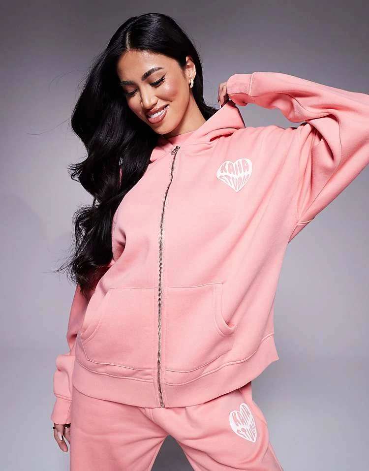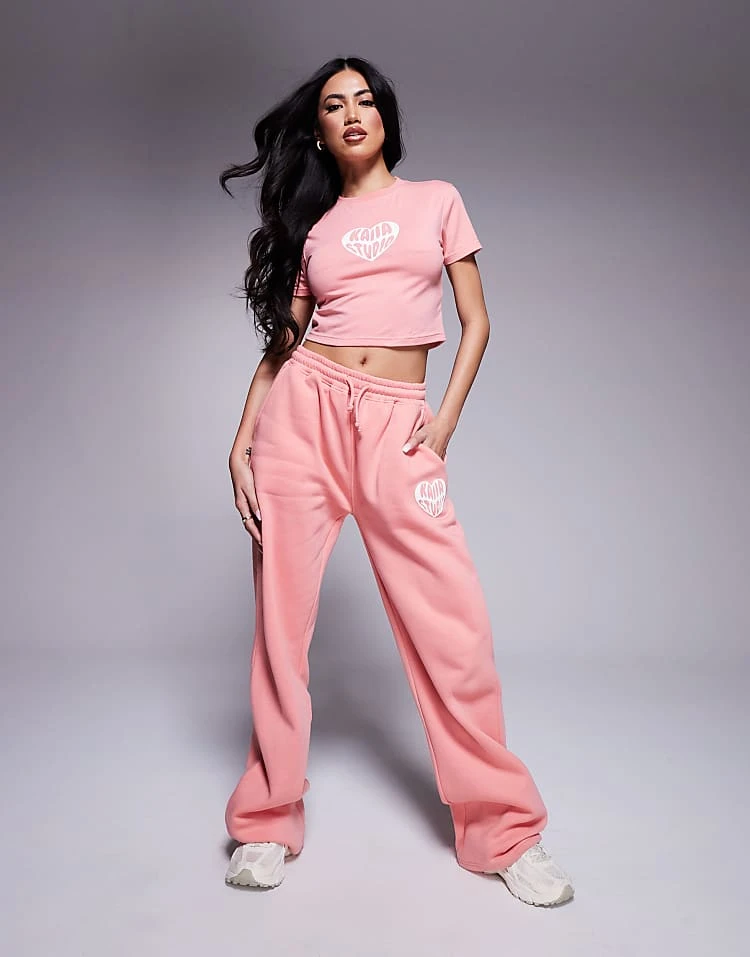 Kaiia Heart Logo Baby Tee, Hoodie And Joggers Co-ord In Peach