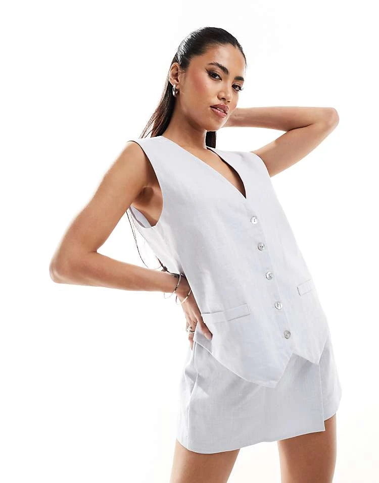Kaiia Linen Waistcoat And Skort Co-ord In Baby Blue