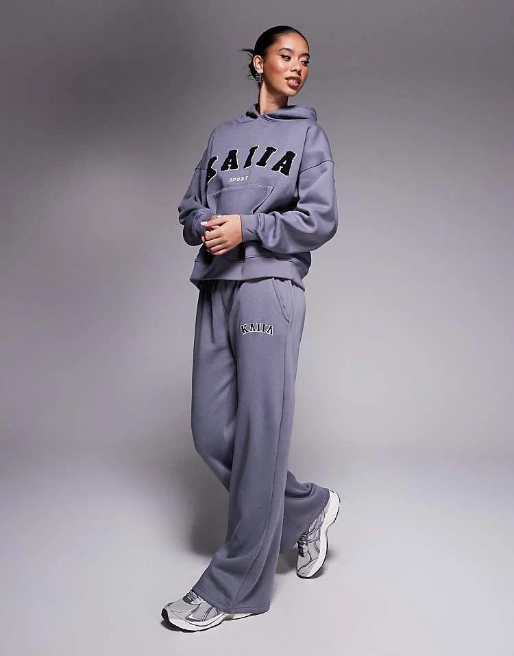 Kaiia Logo Hoodie And Wide Leg Joggers Co-ord In Grey