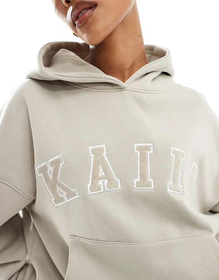 Kaiia Embroidered Logo T-shirt, Zip Through Hoodie, Hoodie And Wide Leg Joggers Co-ord In Light Blue