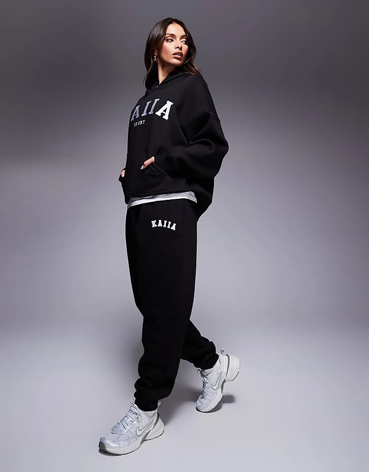 Kaiia Overized Hoodie, Cuffed Joggers, Wide Leg Joggers & Shorts Mix & Match In Black