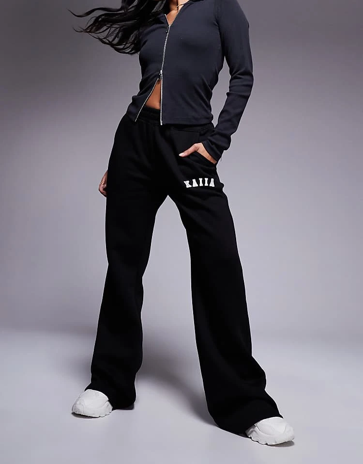 Kaiia Embroidered Logo T-shirt, Zip Through Hoodie, Hoodie And Wide Leg Joggers Co-ord In Light Blue