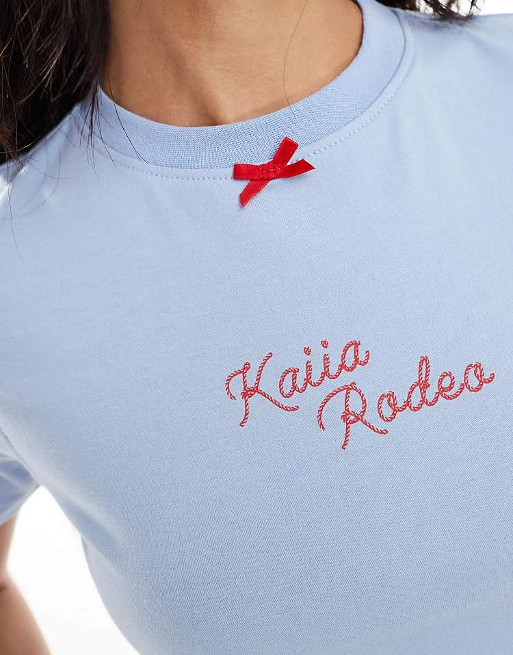 Kaiia Embroidered Logo T-shirt, Zip Through Hoodie, Hoodie And Wide Leg Joggers Co-ord In Light Blue