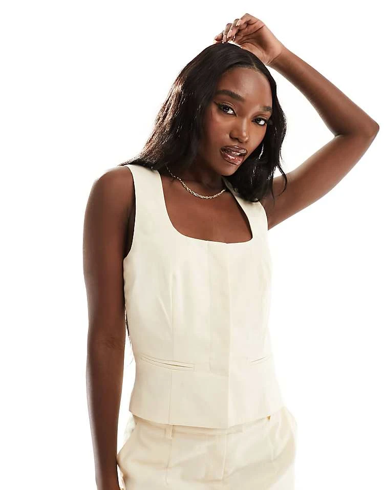 Kaiia Scoop Neck Waistcoat And Maxi Skirt Co-ord In Cream