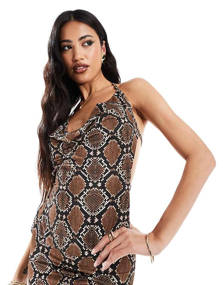 Kaiia Slinky Tops And Column Maxi Skirt Co-ord In Snake
