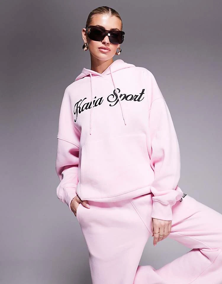 Kaiia Sport Embroidered Script Logo Hoodie And Joggers Co-ord In Pink And Black