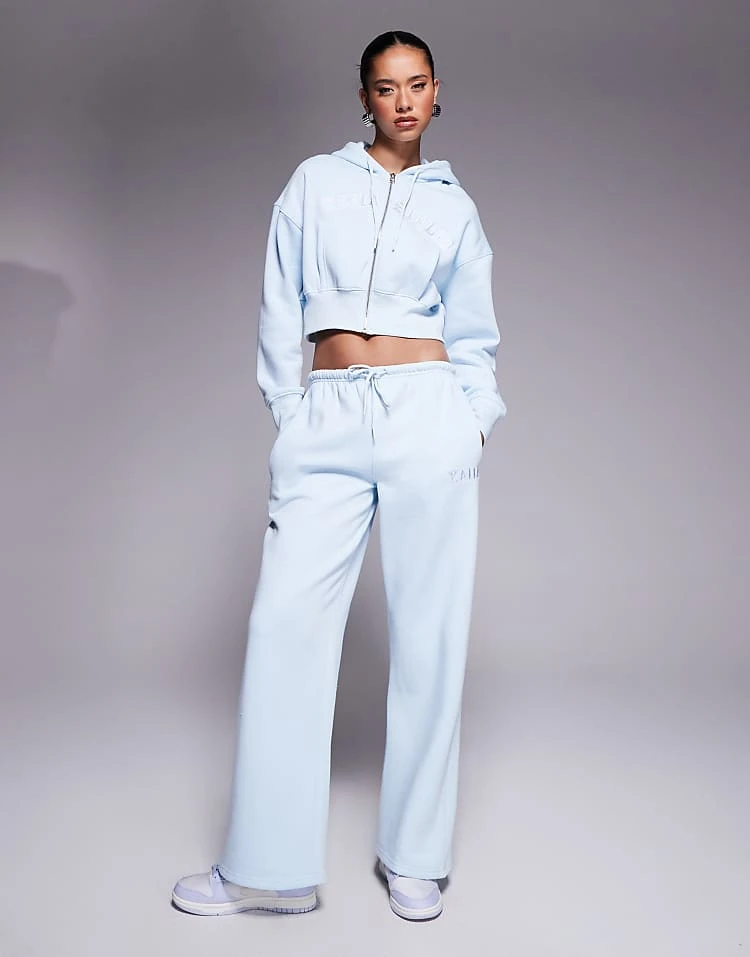 Kaiia Studio Fitted Zip Up Hoodie And Straight Leg Jogger Co-ord In Blue