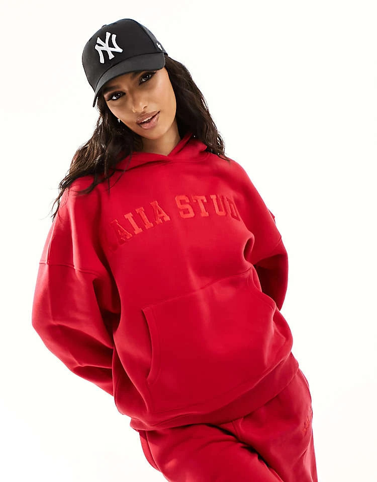 Kaiia Studio Hoodie And Wide Leg Jogger Co-ord In Red