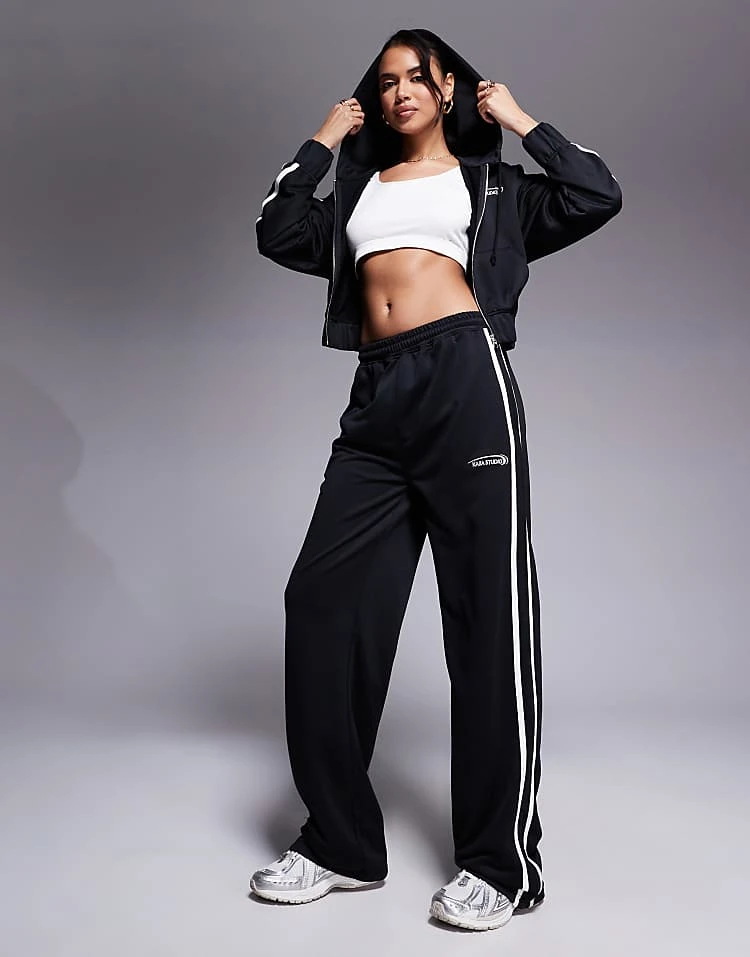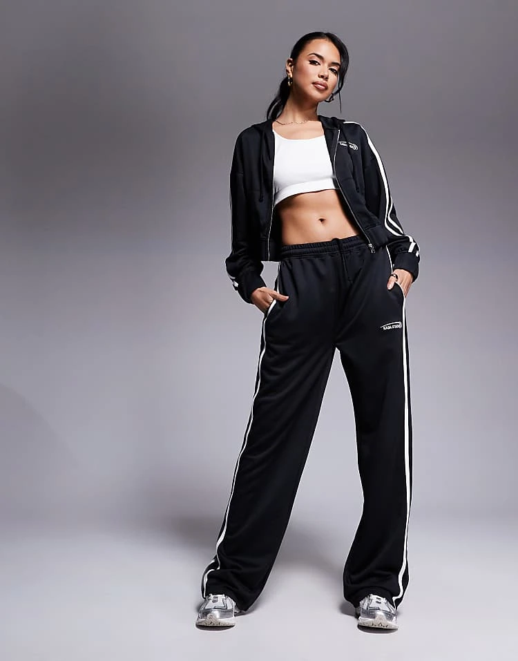 Kaiia Studio Running Club Longsleeve Top, Zip-up Hoodie And Joggers Co-ord In Black