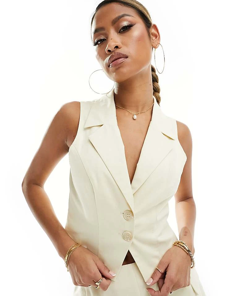 Kaiia Tailored Waistcoat Top And Mini Skirt Co-ord In Ecru