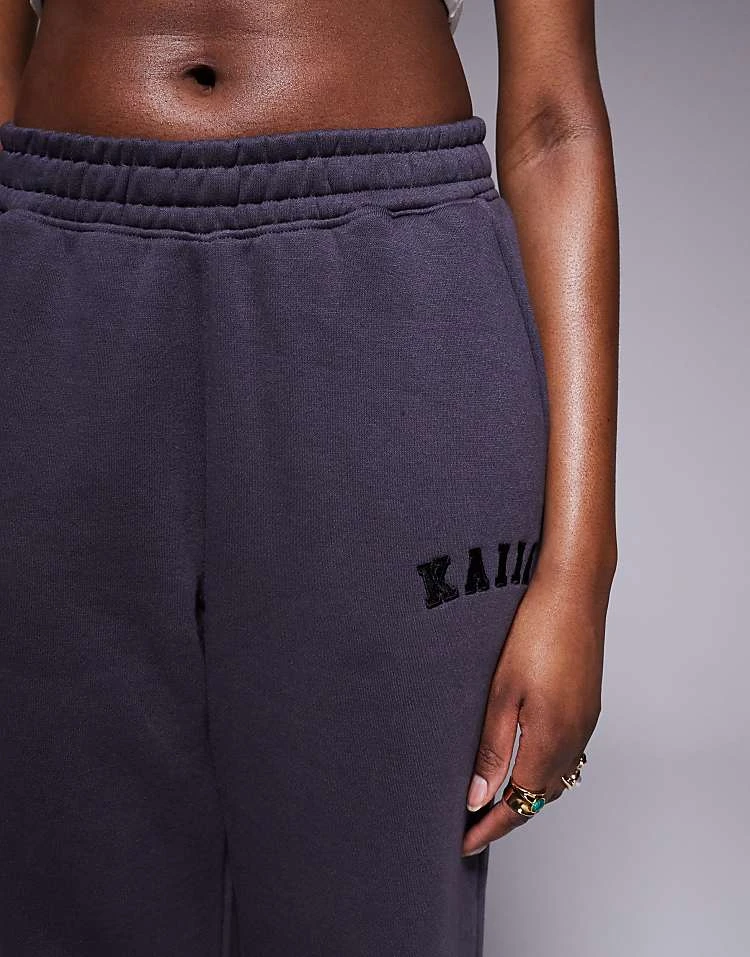 Kaiia Embroidered Logo T-shirt, Zip Through Hoodie, Hoodie And Wide Leg Joggers Co-ord In Light Blue