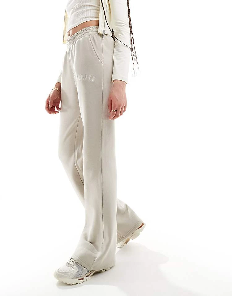 Kaiia Embroidered Logo T-shirt, Zip Through Hoodie, Hoodie And Wide Leg Joggers Co-ord In Light Blue