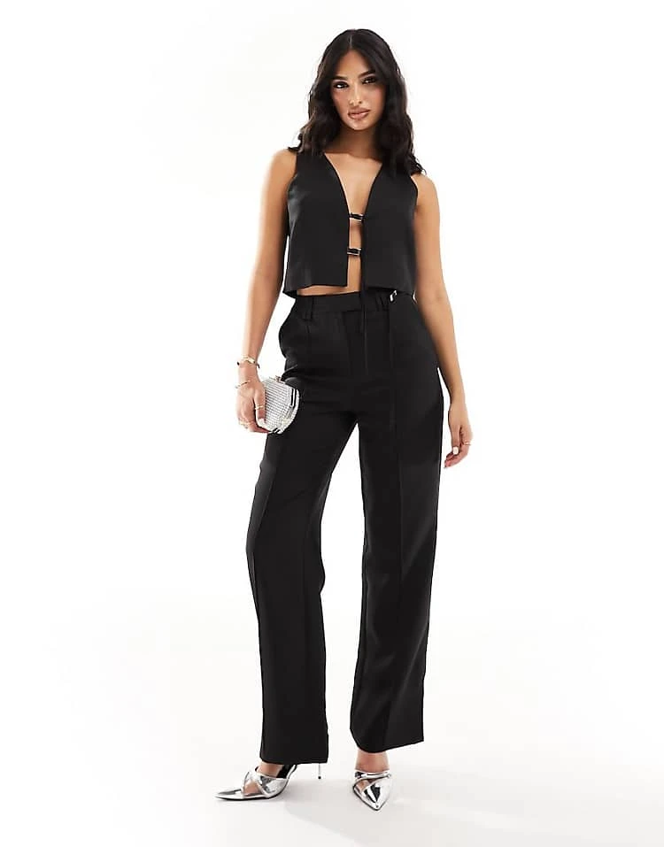 Kaiia Tie Detail Waistcoat And Trousers Co-ord In Black