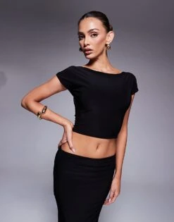 Kaiia X Sasha Corte Floral Print Twist Shoulder Crop Top And Maxi Skirt Co-ord In Chocolate Brown