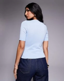 Kaiia Exclusive Scallop Button Front Short Sleeve Cardigan In Light Blue For Women Soft Blue