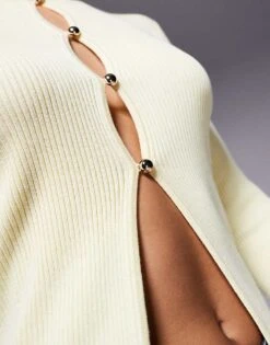 Kaiia Button Through Split Front Longline Knitted Top In Black For Women