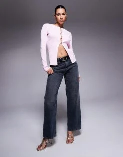 Kaiia Button Through Split Front Longline Cardigan In Charcoal For Women