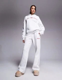 Kaiia Tall Embroidered Logo Wide Leg Joggers In Light Grey For Women