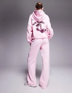 Kaiia Wide Leg Contrast Logo Joggers Co-ord In Baby Pink For Women
