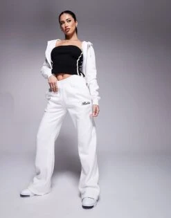 Kaiia Angel Number Cropped Zip Up Hoodie And Joggers Co-ord In Cream