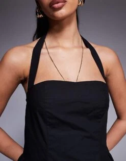 Kaiia Exclusive Poplin Halterneck Dropped Waist Tie Detail Maxi Dress In Soft Blue For Women