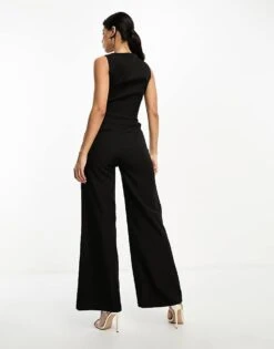 Kaiia Sleeveless Wide Leg Waistcoat Jumpsuit In Black For Women