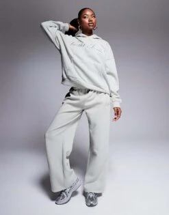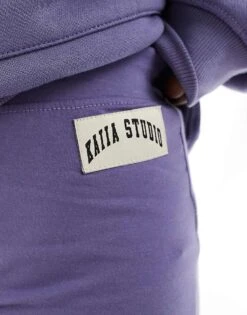 Kaiia Studio Fitted Zip Up Hoodie And Straight Leg Jogger Co-ord In Washed Grey And Pink