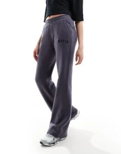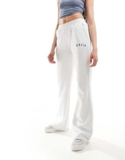 Kaiia Tall Embroidered Logo Wide Leg Joggers In Light Grey For Women