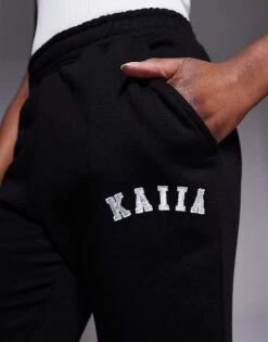 Kaiia Tall Embroidered Logo Cuffed Joggers In Black For Women