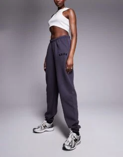 Kaiia Tall Embroidered Logo Cuffed Joggers In Light Grey For Women