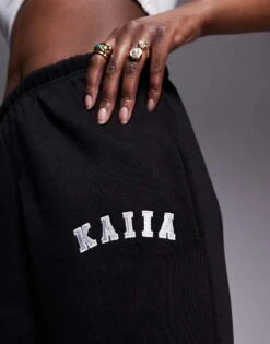 Kaiia Tall Embroidered Logo Wide Leg Joggers In Black For Women