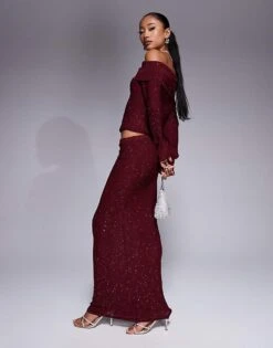 Kaiia X Sasha Corte Floral Print Twist Shoulder Crop Top And Maxi Skirt Co-ord In Chocolate Brown