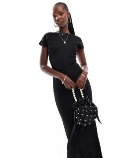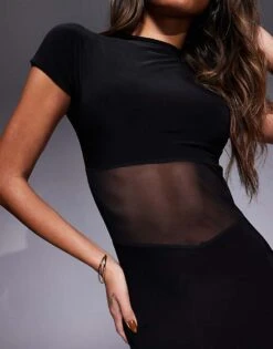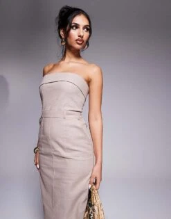 Kaiia Exclusive Knitted Short Sleeve Bodycon Jumper Dress With Matching Scarf In Grey For Women
